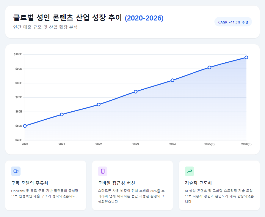 글로벌 성인 콘텐츠 산업 성장 추이 (2020-2026)